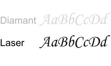 La gravure diamant est classique et claire. La gravure laser est moderne et plus foncée. Cela reste une question de goût car dans les deux cas, ce sont de véritables gravures professionnelles dans la matière, et pas seulement des impressions superficielles.